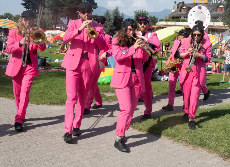 Après leur formation classique, 11 musiciens des fanfares villageoises créent en 2020 Sneaky Funk Squad, une fanfare de rue funky, rose et déjantée. Leur but : découvrir de nouveaux horizons, relever des défis, et surtout mettre l’ambiance ! La Team, composée de trompettes, saxophones, trombones, sousaphone et percussions, tient à briser la barrière avec le public. Leur répertoire funk, soul et pop fait danser toutes les générations, prêt à enflammer les entre les étapes de cette journée ! + d'infos